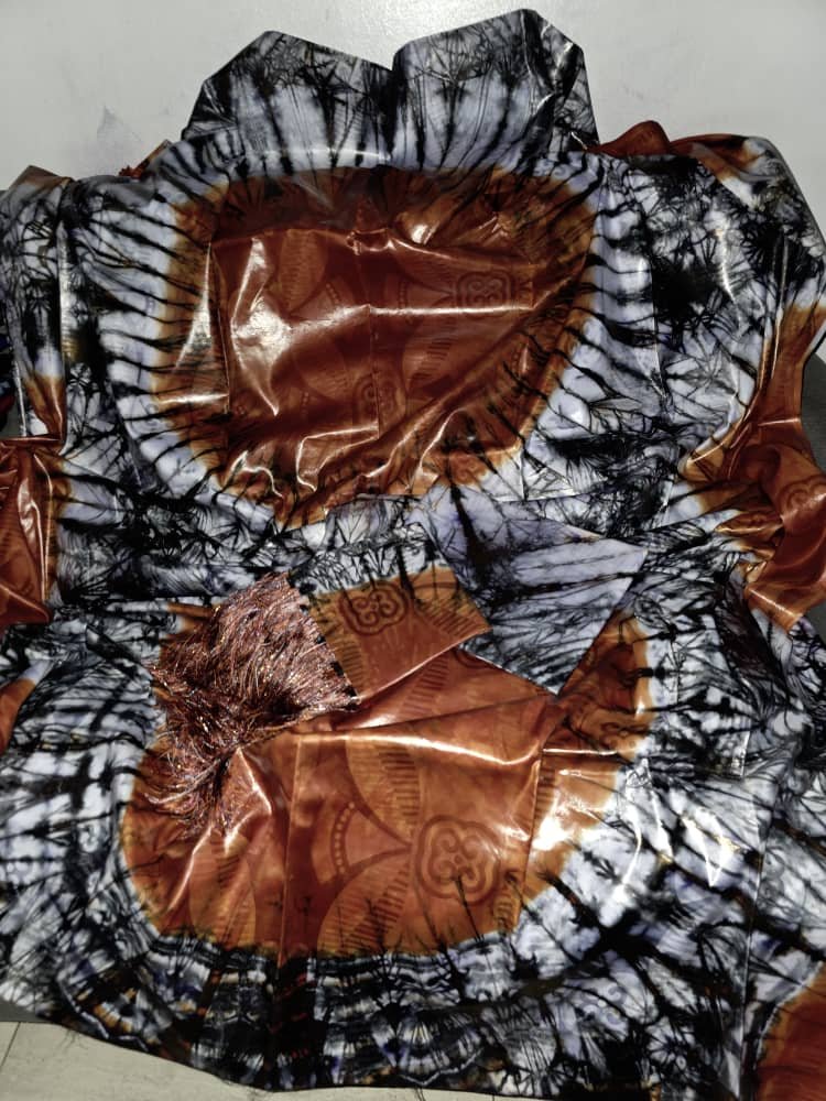 Thioup malien teinture artisanale du Mali sur le prestigieux bazin riche getzner, meilleure qualité. Modèle siri classique aux couleurs orange et lomassa